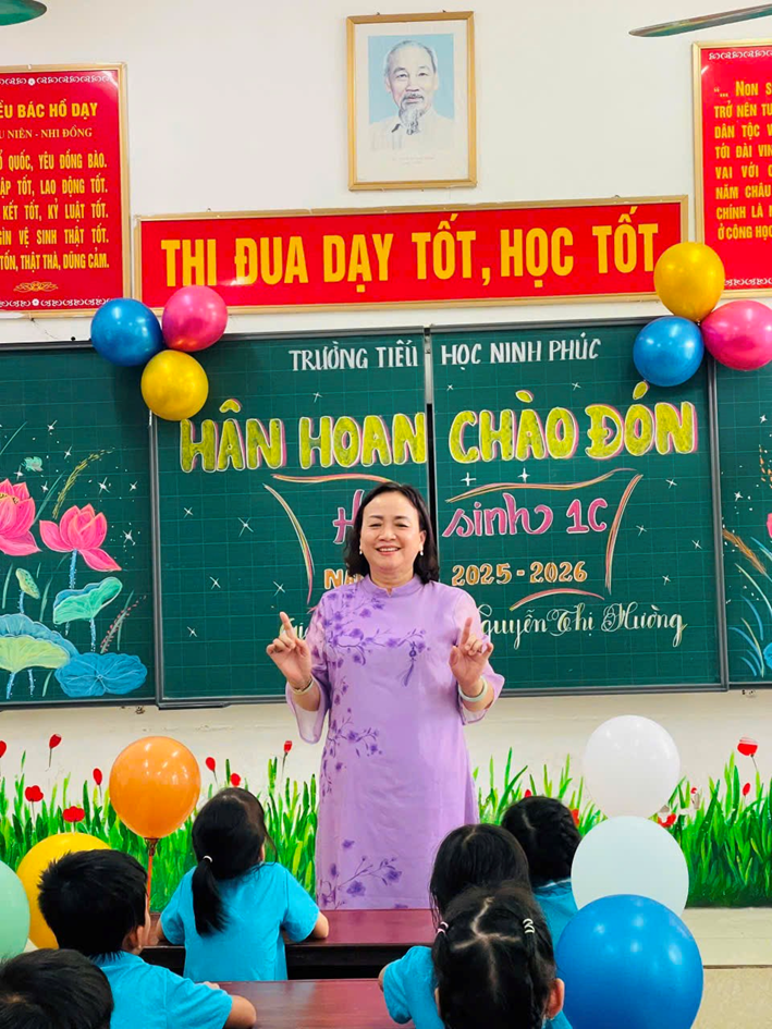 Năm học 2025-2026, khối lớp 1 của Trường Tiểu học Ninh Phúc được chia làm 6 lớp do các cô giáo phụ trách: Cô Đào Thị Thanh Huệ (chủ nhiệm lớp 1A), Cô Phạm Thị Thu Hà (chủ nhiệm lớp 1B), Cô Nguyễn Thị Hường (chủ nhiệm lớp 1C), Cô Trần Thị Thanh Nhàn (chủ nhiệm lớp 1D), Cô Nguyễn Thị Diệu Linh (chủ nhiệm lớp 1E), Cô Dương Thị Hiền (chủ nhiệm lớp 1G). Ngày đầu tiên với các em học sinh bước chân vào ngôi trường mới, không chỉ các con, các bậc phụ huynh mà cả các thầy cô đều có những cảm xúc khó nói thành lời. Với các con, đó là bao điều vừa mới lạ, vừa bỡ ngỡ, lại vừa vui mừng.