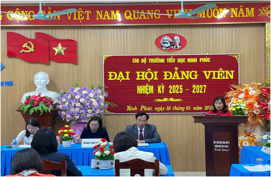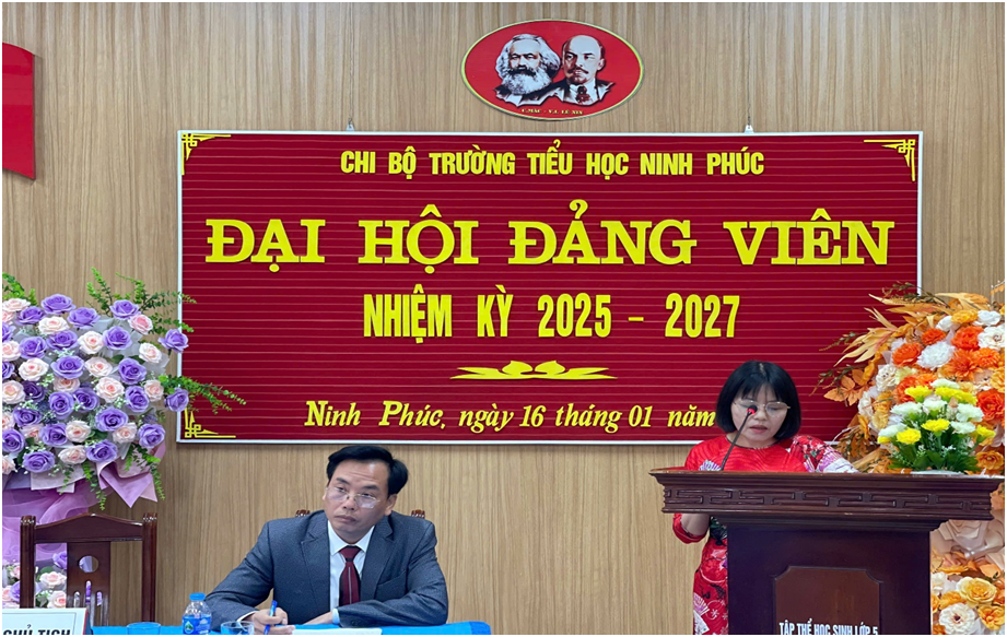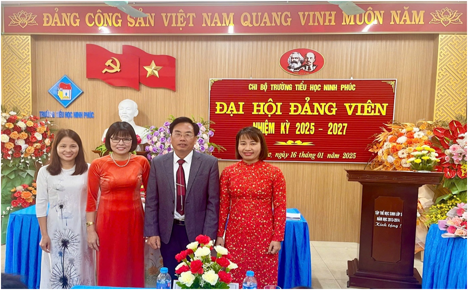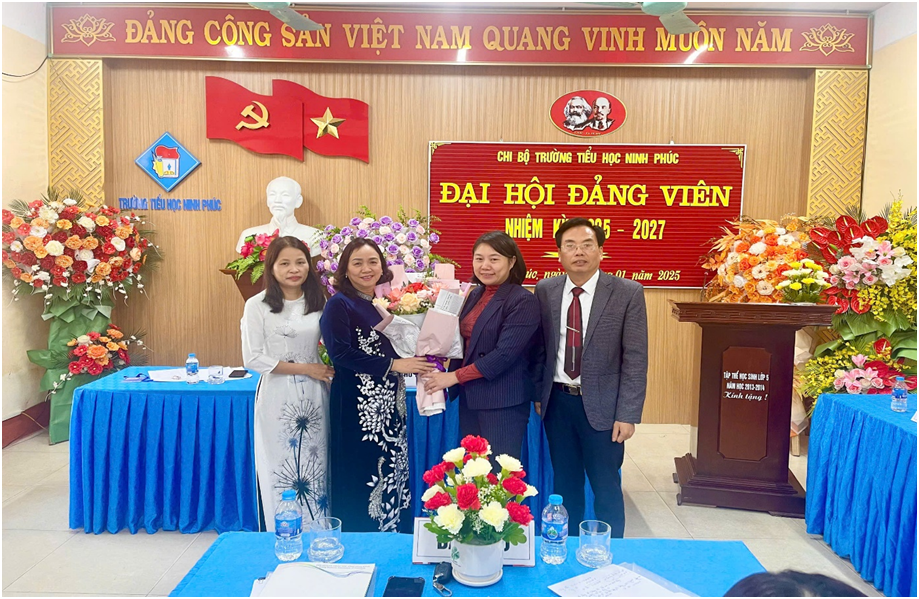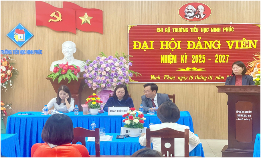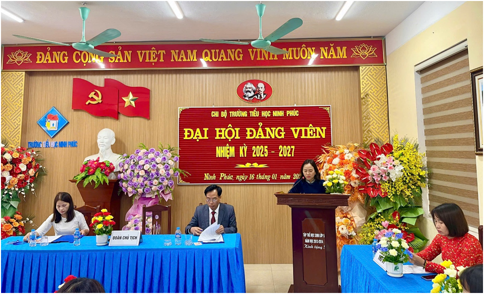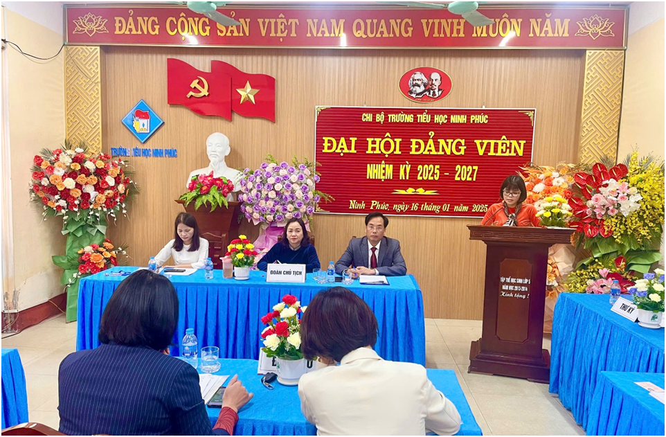 Thực hiện điều lệ Đảng Cộng sản Việt Nam, Chỉ thị số 35-CT/TW ngày 14/6/2024 của Bộ chính trị về Đại hội Đảng bộ các cấp tiến tới Đại hội Đại biểu toàn quốc lần thứ XIV của Đảng; Kế hoạch số 63-KH/ĐU, ngày 08/10/2024 của Đảng uỷ xã Ninh Phúc (nay là phường Ninh Phúc) về Đại hội các chi bộ nhiệm kỳ 2025-2027, tiến tới Đại hội Đại biểu Đảng bộ phường Ninh Phúc lần thứ XXIX, nhiệm kỳ 2025-2030. Sáng ngày 16/01/2025 Chi bộ Trường Tiểu học Ninh Phúc đã long trọng tổ chức Đại hội Đảng viên nhiệm kỳ 2025-2027.