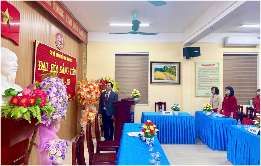 Đại hội được nghe phát biểu chỉ đạo của đồng chí Lê Thị Thanh Hà – Bí thư Đảng bộ, chủ tịch HĐND phường Ninh Phúc. Đồng chí đánh giá cao công tác chuẩn bị đại hội của Chi bộ, đồng thời ghi nhận và biểu dương những thành tích mà chi bộ đã đạt được, cũng như nhắc nhở những hạn chế, tồn tại của chi bộ trong nhiệm kỳ qua. Bên cạnh đó, đồng chí giao nhiệm vụ cho chi bộ tiếp tục làm tốt hơn nữa công tác dạy học để góp phần thực hiện tốt các nhiệm vụ chính trị của nhà trường trong thời gian tiếp theo.